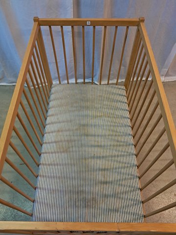 Barneseng i massivt bøgetræ, fra 1970erne.
