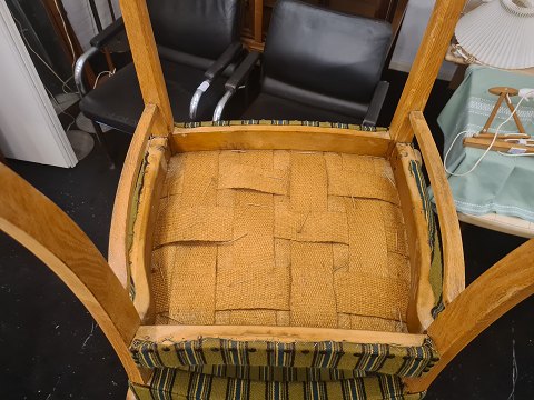 Par Dansk Design armstole fra 1950'erne. Fremstillet i eg og betrukket med stof fra 1970'erne. Fremstår gode og stabile uden nævneværdige brugsspor.