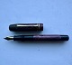 ART DECO STIL: Bordeaux slangeskind fyldepen fra omkring 1940. Fremstår i god stand uden skader eller reparationer. “Push button” blæk-påfylder. Fungerer ikke. Der skal isættes ny gummisæk før end den er funktionsdygtig igen. Ny gummisæk isættes mod en betaling på kr. 250,- Denne fyldepen er 12,5 cm lang.