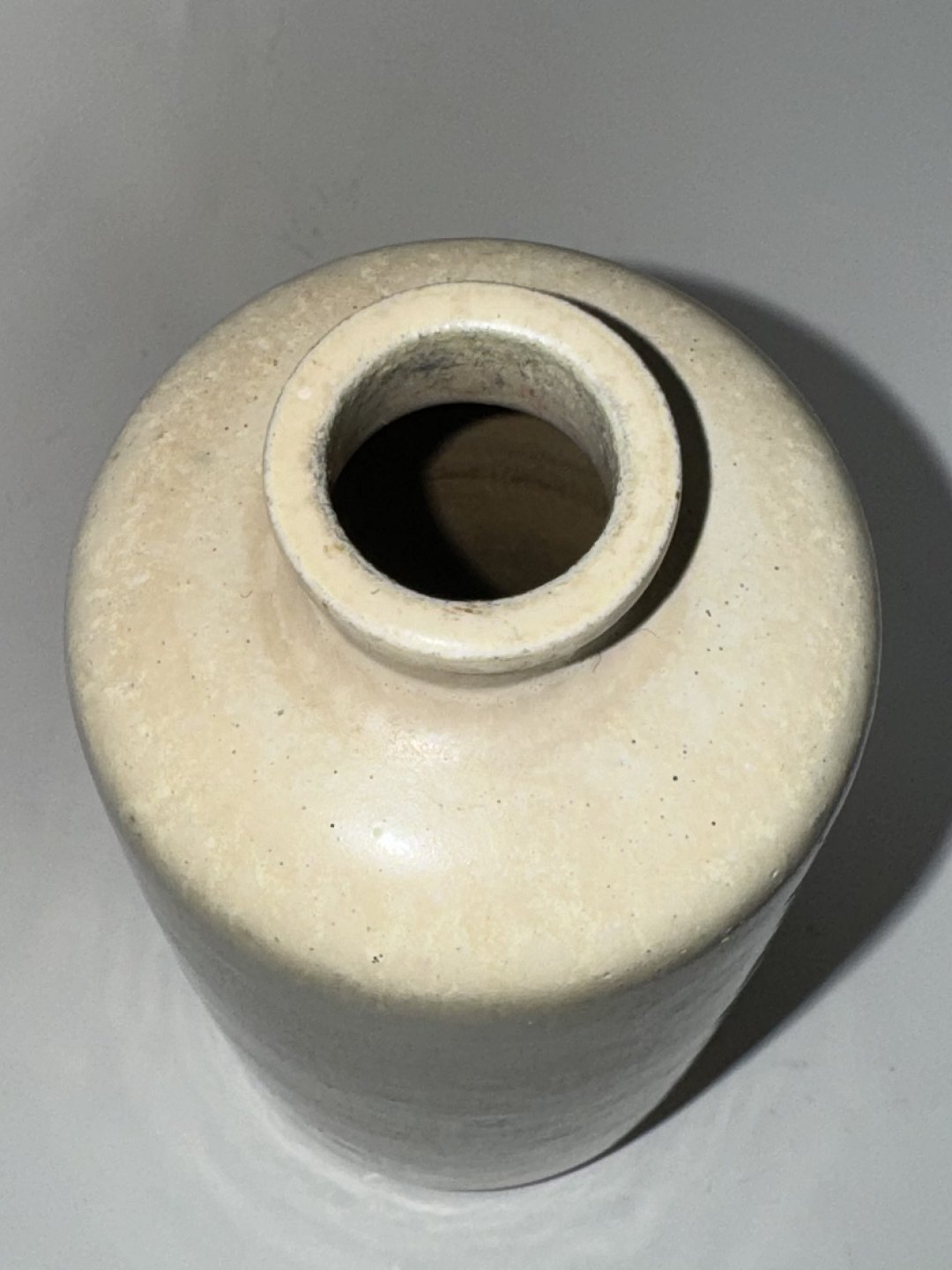 Keramik vase fra Saxbo. Dækket af en lys creme glasur. Fremstillet i Danmark omkring 1945. I god stand. Fabriksmærket på bunden. H. 18,5 cm