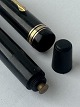 Stor sort Big Ben no. 8 fyldepen med push button filler. Fremstår i god stand uden skader eller reparationer. Alle dele originale BB dele inklusiv en kæmpe guldspids i 14 karat. Der skal indsættes ny gummisæk så pennen igen kan optage blæk og skrive igen. Fyldepennen måler 13,7 cm i længde og hættens åbningsdismeter er 1,3 cm.