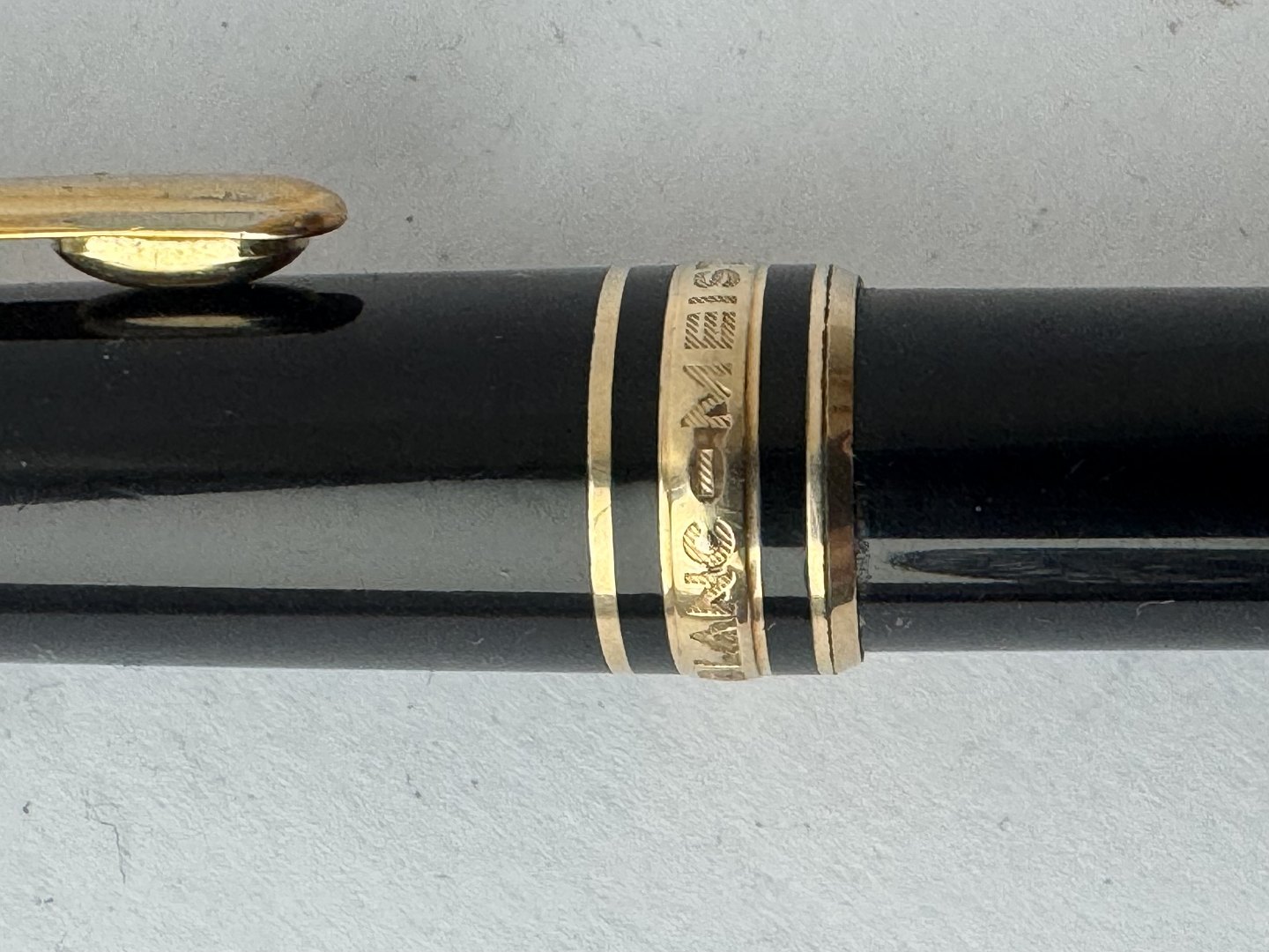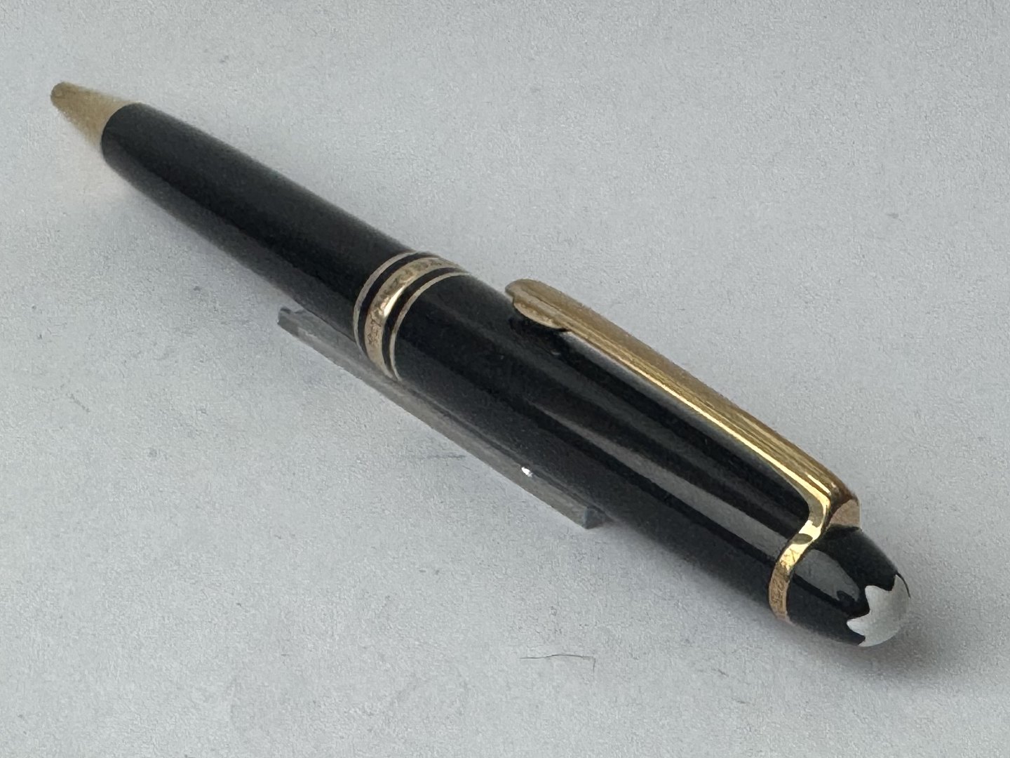 Slim black Montblanc Meisterstück Classique ballpoint pen. Ready to be used with newer refill. Appears in good condition. L. 13.5 cm
