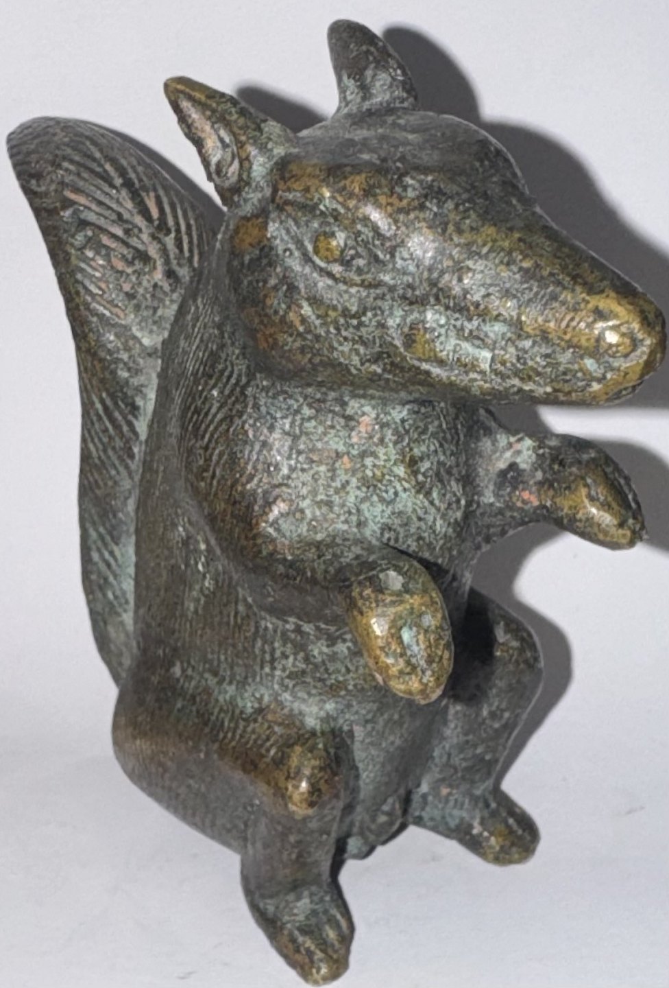 Figur af siddende egern udført i bronce. Formodes fremstillet omkring 1900. Oprindelse ubekendt. Fremstår i god stand uden skader eller reparationer. H. 8,5 cm Vægt 263 gram.