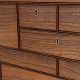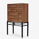 Sjældent skab i palisander med skuffer og sortlakeret stel med messingsko.
