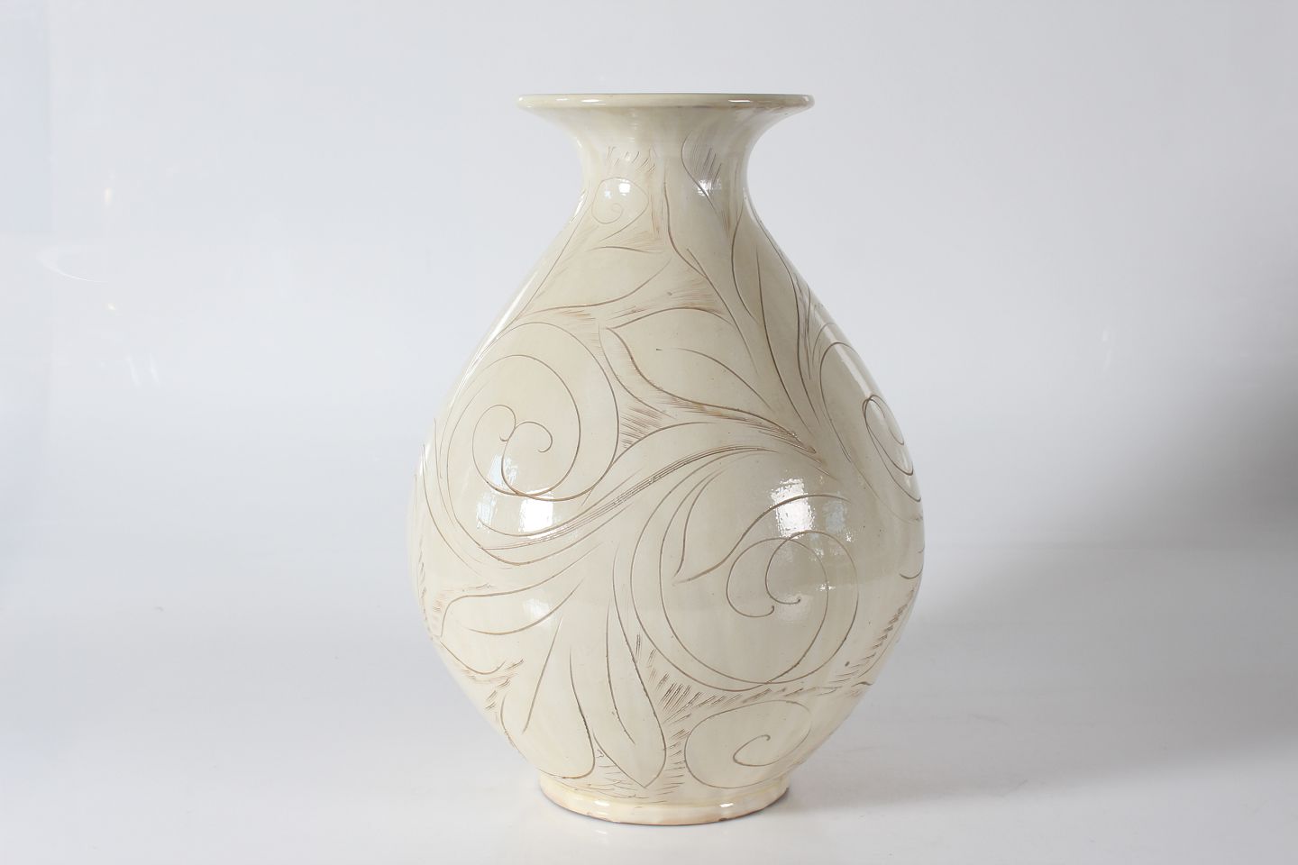 Herman A. Kähler Huge beige floor vase with sgrafitto decoration attributed to Julie Kabell Sign. HAK Height 49 cm Diameter 35 cm Good condition - see photos of tiny glaze chips + chip at the bottom