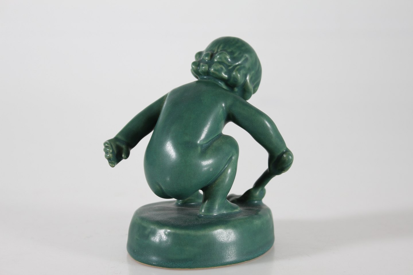 P. Ipsens Enke Figur af pige med skovl nr. 889 arbejdslyst Formgjort af Adda Bonfils (1883-1943) Fremstillet i keramik m/jadegrøn glasur Højde 11 cm Bredde 8 cm Fin stand uden skår eller afslag