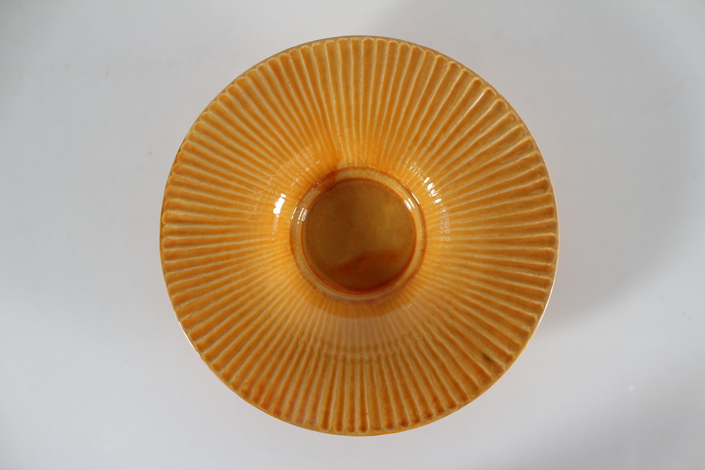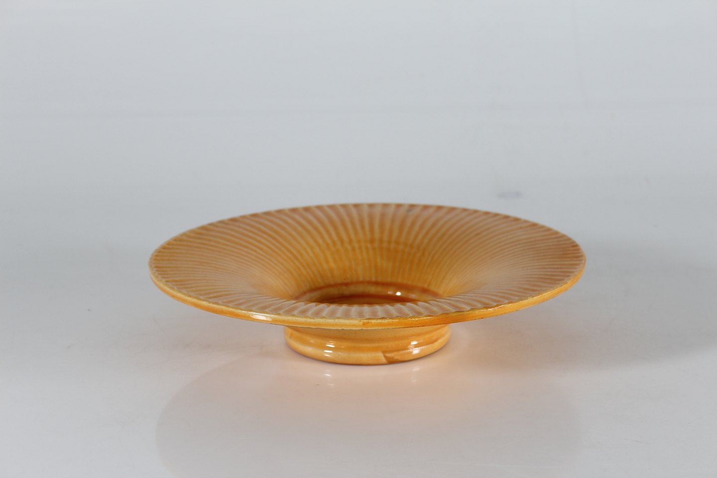Herman A. Kähler Svend Hammershøi præstekravefad dekoreret med gul uranglasur cirka 1930'erne Sign. HAK + Danmark Højde 6 cm Diameter 30 cm Fin stand uden skår og revner