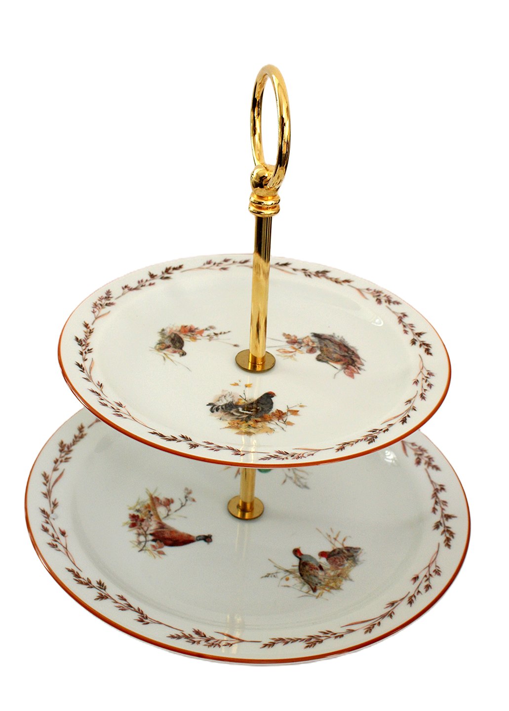 Jagtstellet designet af Mads Stage for Imerco. Tallerken etagere, Tallerken opsats. Yderst sjælden. Der er 3 forskellige vildtfugle på hver tallerken, som svarer til de 6 vildtfuglemotiver på stellet.