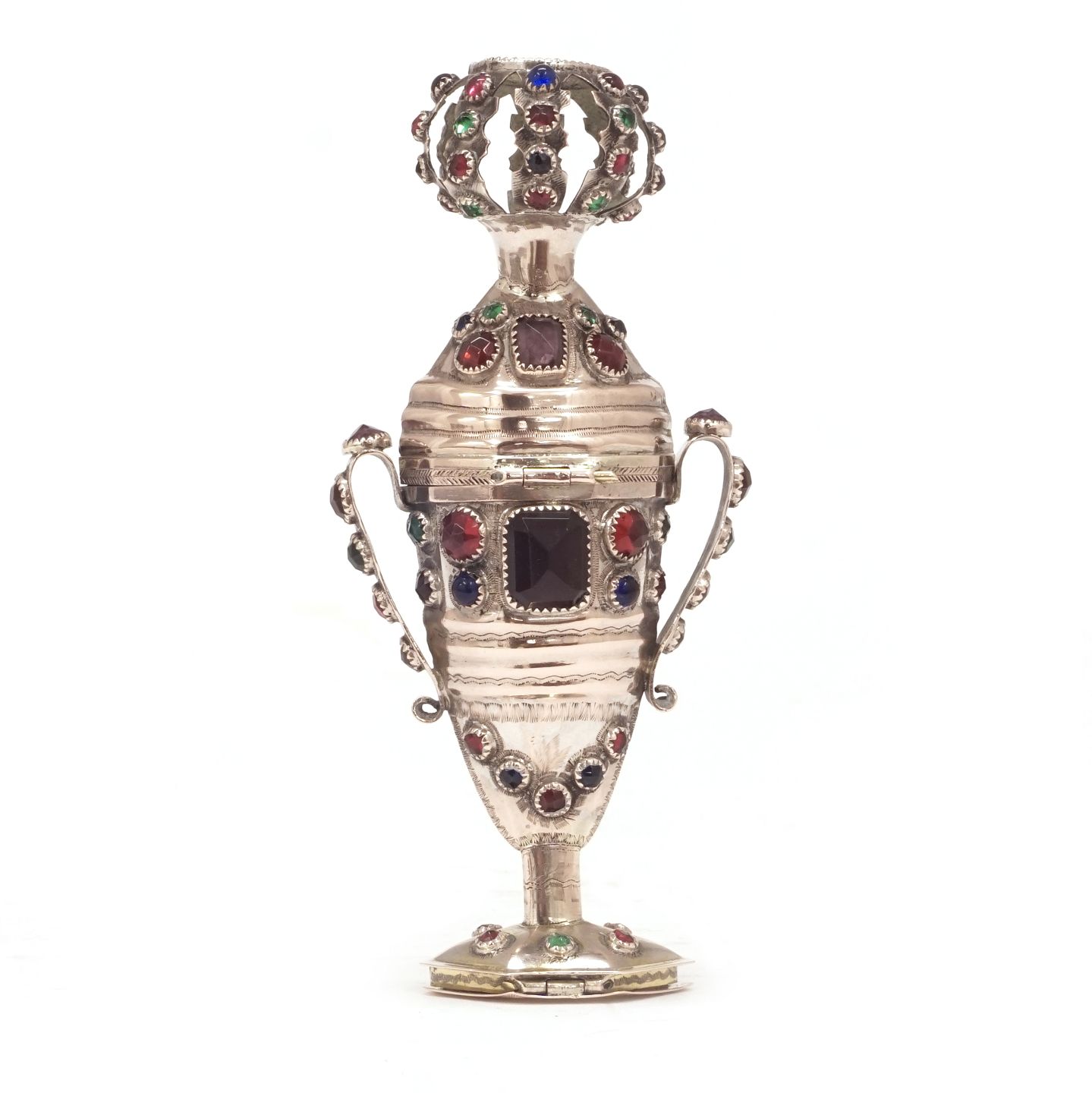 Riechdose aus Silber mit 91 Glassteinen