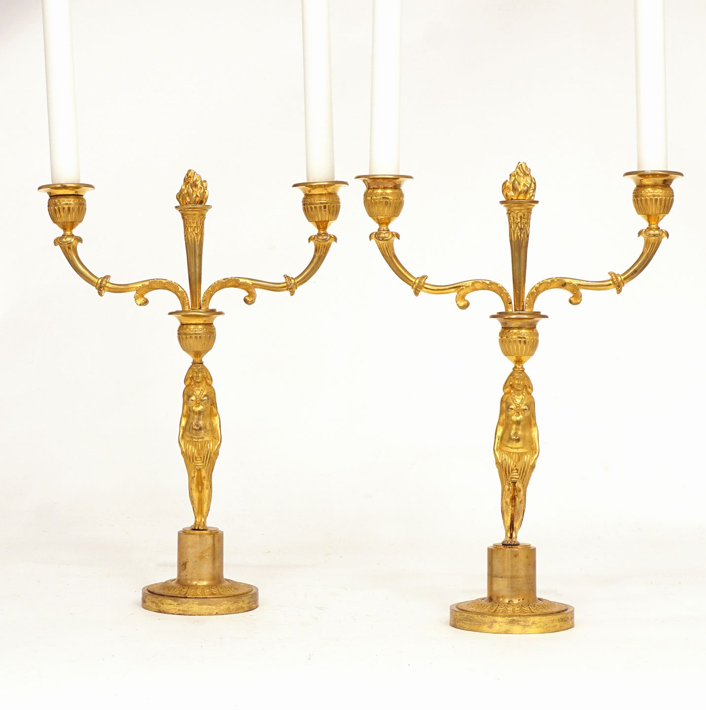 Et par kandelabre i lueforgyldt bronze