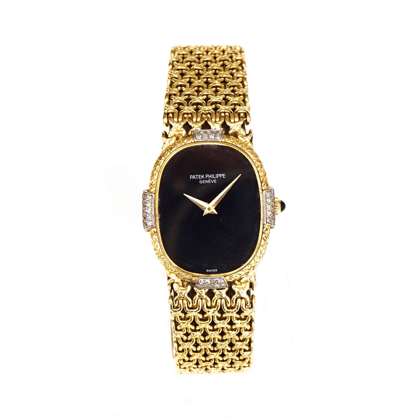 Patek Phillipe Golden Ellipse 18ct Gold with diamonds Black onyx dial Ref. 4307 Size dial: 2,5x2,1cm. Bracelet L: 18,5cm Item number: 28298