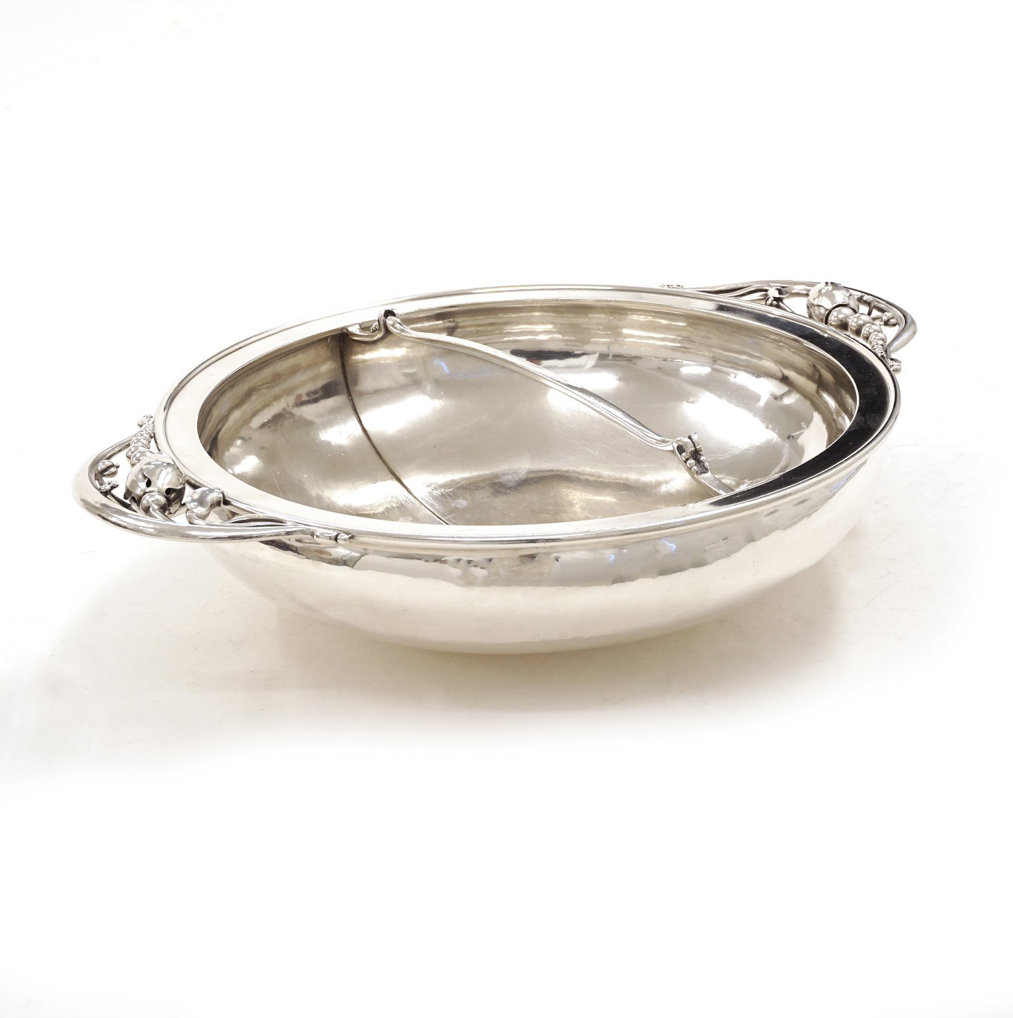 Georg Jensen Magnolia todelt sølv skål med gennembrudte hanke