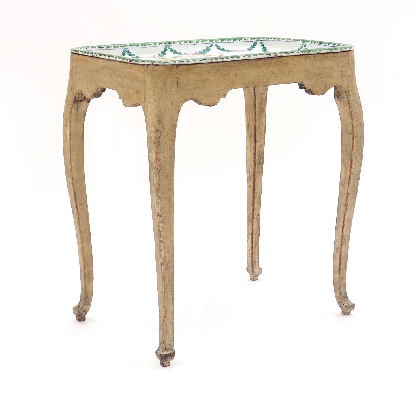 Fajancebord Stockholm. Fajancebord med polykromdekoreret plade prydet med adelsvåben. Signeret Stockholm 14.01.175x. Sverige 1750erne. H: 75cm. Plade: 67x46cm