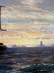I E C Rasmussen parti fra Grønland med skib, isbjerge og solnedgang