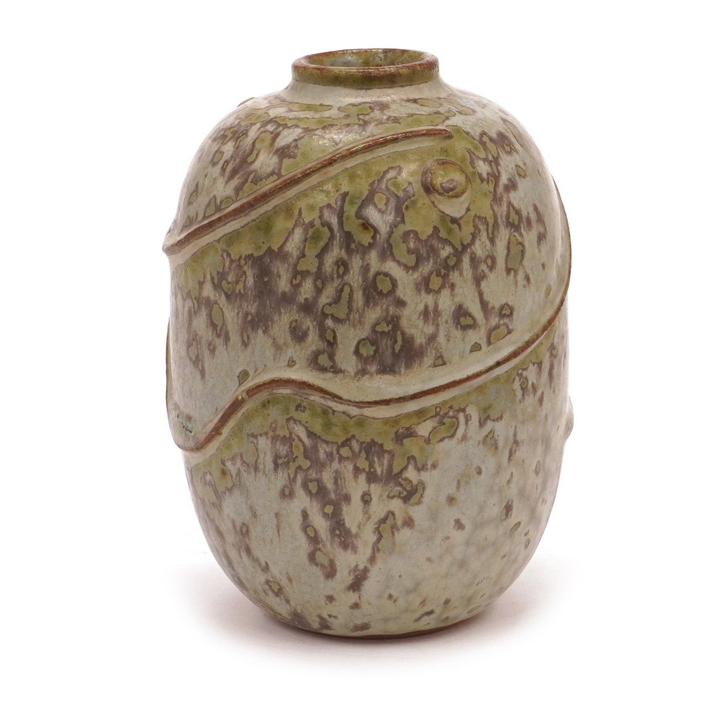 Arne Bang stentøjsvase med spættet glasur modelleret i relief Modelnummer 120