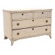 Et par perlemorsfarvede kommoder med tre skuffer.