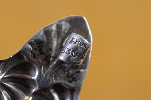 Brooch with flowers in silver and core of turquoise ceramics. Art Nouveau inspired. Stamped ARK 830S made by Aksel Rasmussen Kert. Art No. 12