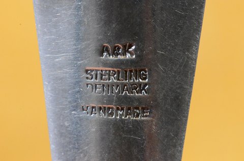 Broche af sølv pileformet blad. Stemplet A&K Sterling Denmark Handmade. Aarre & Krogs eftf. Randers 1949-90. Str.: 7*2 cm. Art No. 64