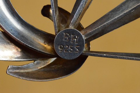 Brooch of silver, vintage design of the 3-dimensional leaf pattern. Stamped "BH" 925S. Str .: 6.8 * 3.5 cm. Art No.74