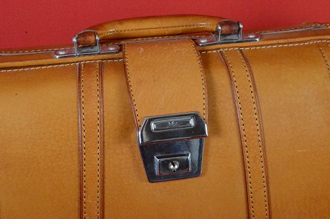 Briefcase of leather and fabric, h: 24 cm, l: 37 cm