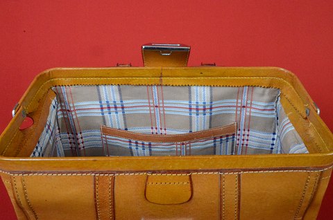 Briefcase of leather and fabric, h: 24 cm, l: 37 cm