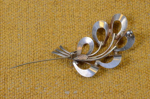 Broche af sølv, vintage design af 3-dimensionel bladmønster. Stemplet 925S Denmark HS (Herman Siersbøl). Str. L 5 cm. Art No. 119