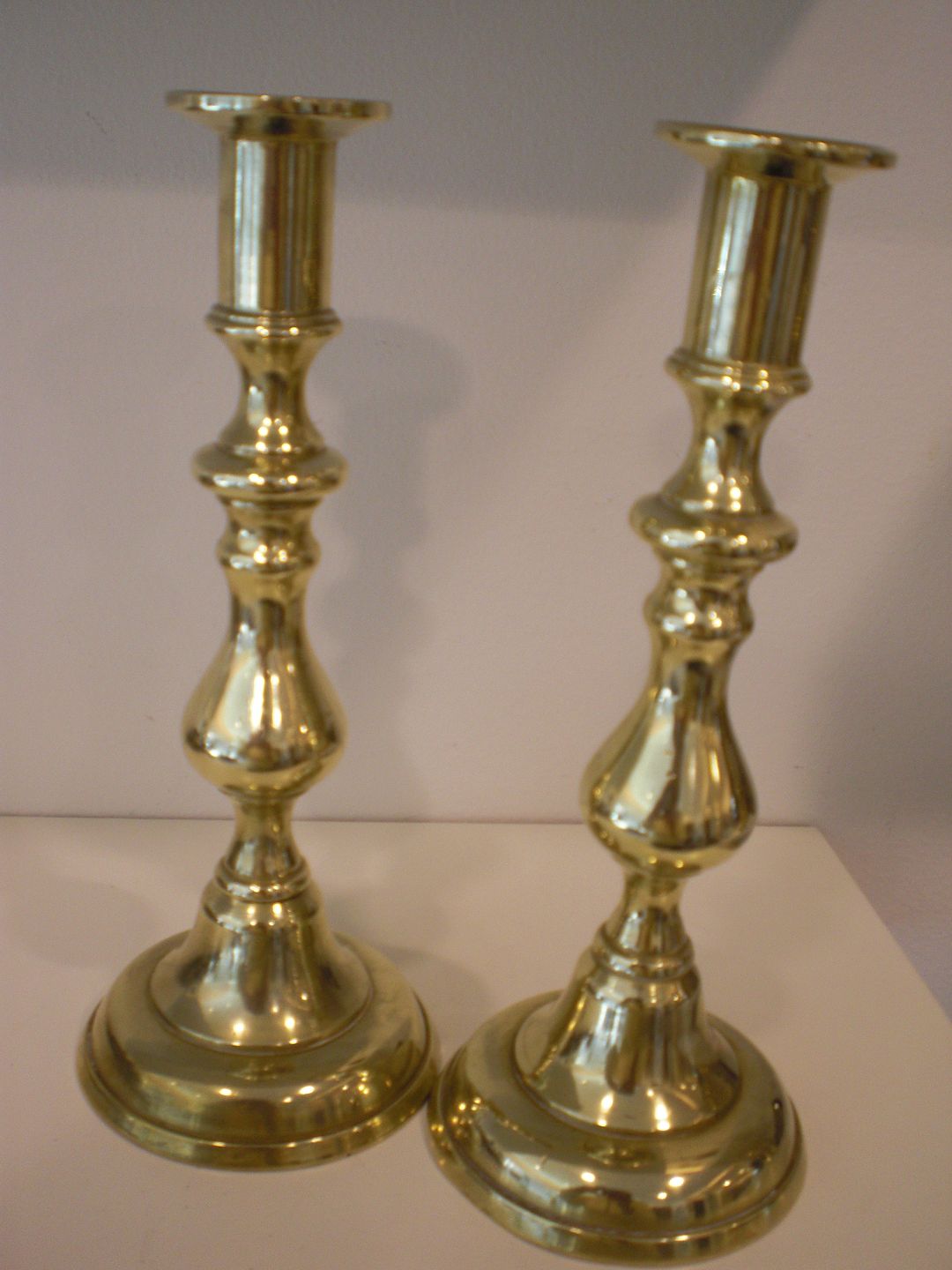 Et par kraftige formentlig svenske messingstager ca. 1880 - Højde: 23,7 cm.