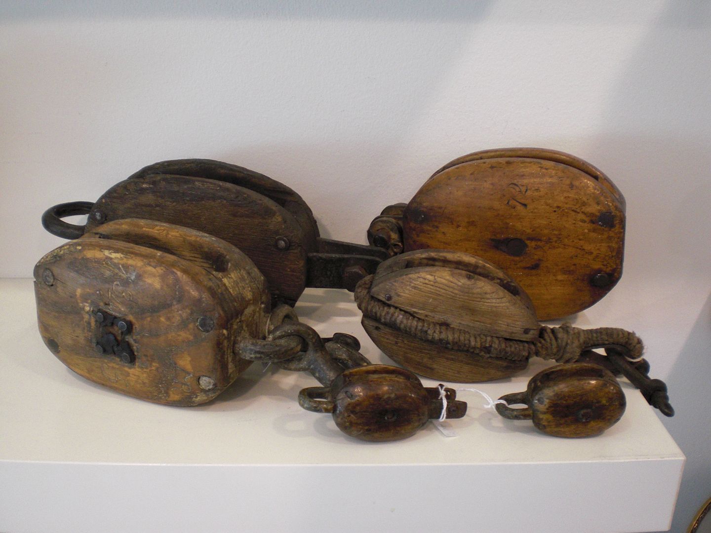 6 gamle træblokke - enkelte og dobbelte i forskellige størrelser (4 - 23 cm) alle fra omkring 1900.