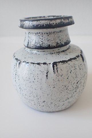 Arne Bang stentøjskande i med spættet glasur og blomsterdekoration.