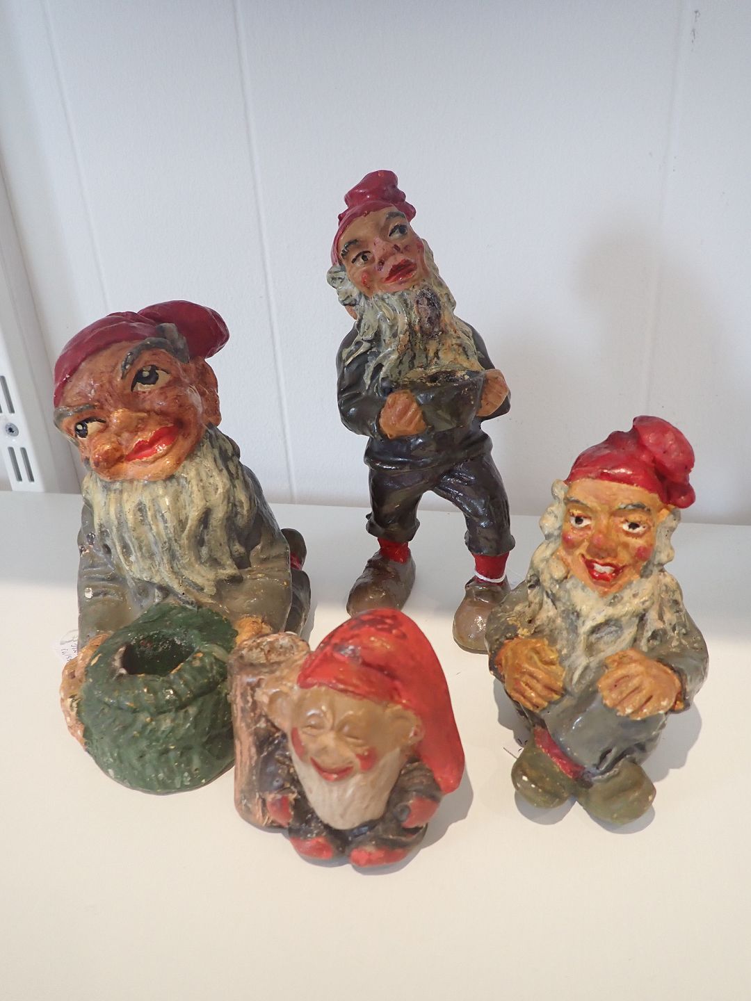 4 Håndmalede gipsnisser - 1940 -1950erne.