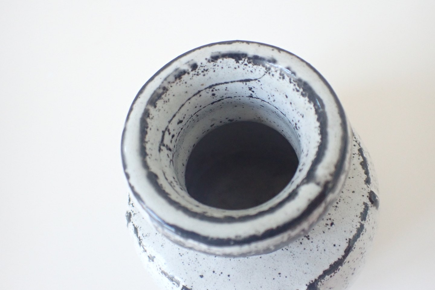 Svend Hammershøj (1873 - 1948) for Kähler. Buttet keramikvase i sort/hvid dobbeltglasur(askeglasur).Med smallere kantet hals og små dekorative "ører". Stemplet HAK, Denmark. Højde: 19,5 cm. I fin stand.