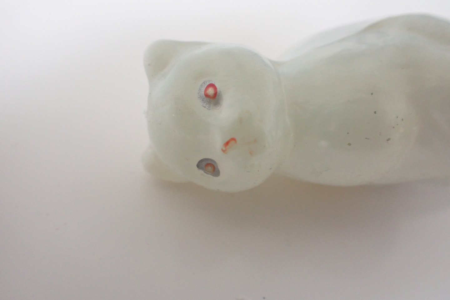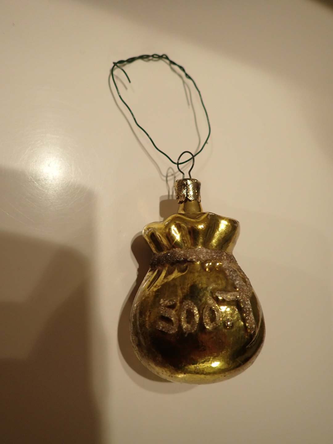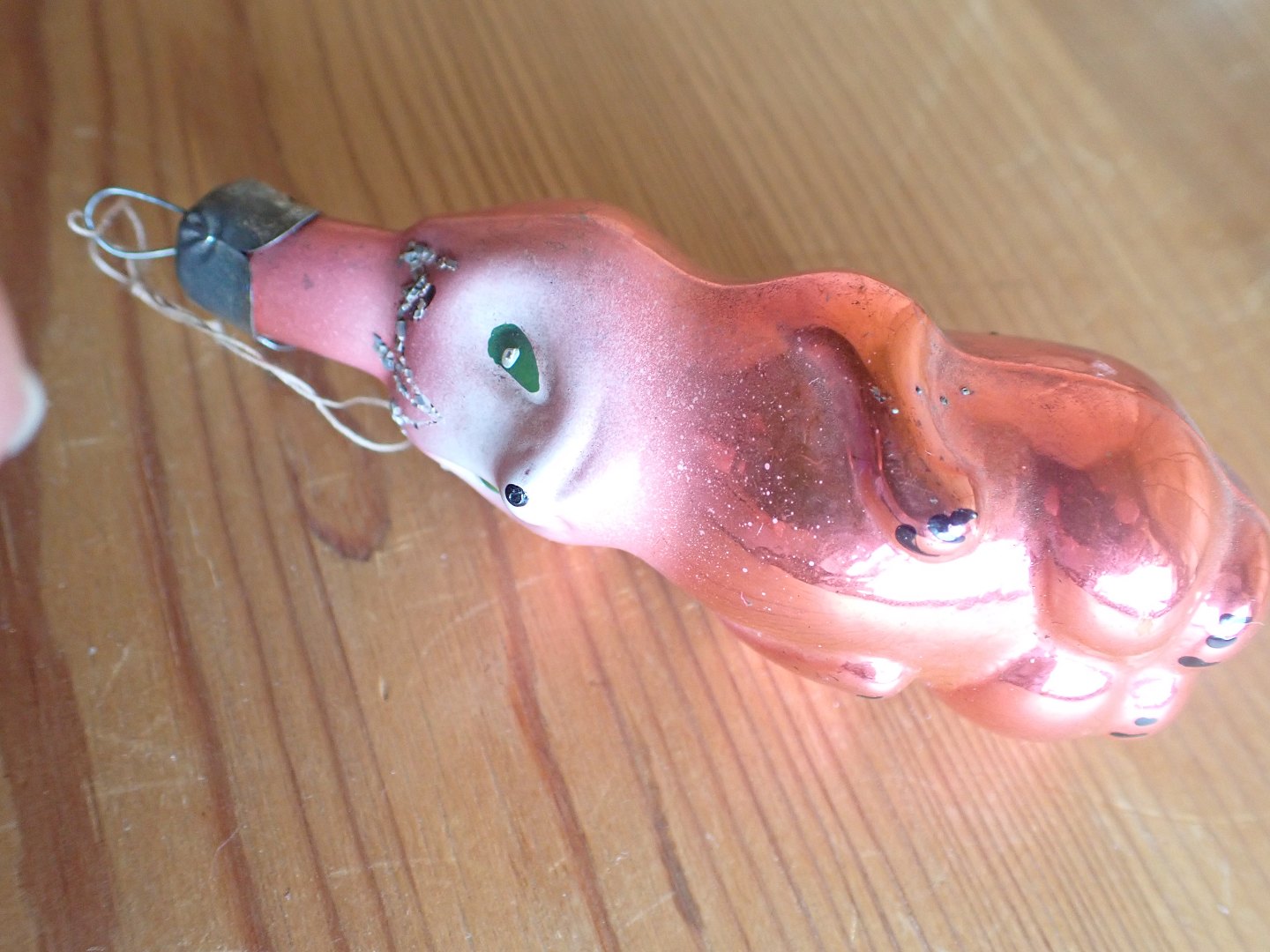 6 glasornamenter, figurer - en russisk agurk, en russisk ræv, et tysk hus, en russisk kat, en russisk snurretop (solgt) og en tysk pengepose. Alle 1930 - 194 og i pæn stand i forhold til alder. Priser: fra 150 - 225 kr.