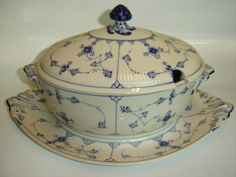 Royal Copenhagen Blue Fluted Plain, Big Center piece on high foot Produced between 1898-1922 Dek. No. 1/458 factory 1st quality Diameter 23.5 cm. Height 14.5 cm. Perfect condition