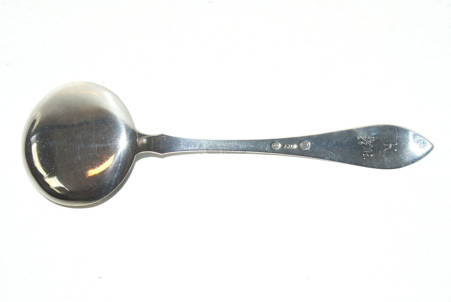 Petit four spoon Empire Silver With initials Engraved year 1908 Length 14 cm. Well maintained condition Polished and packed in a bag