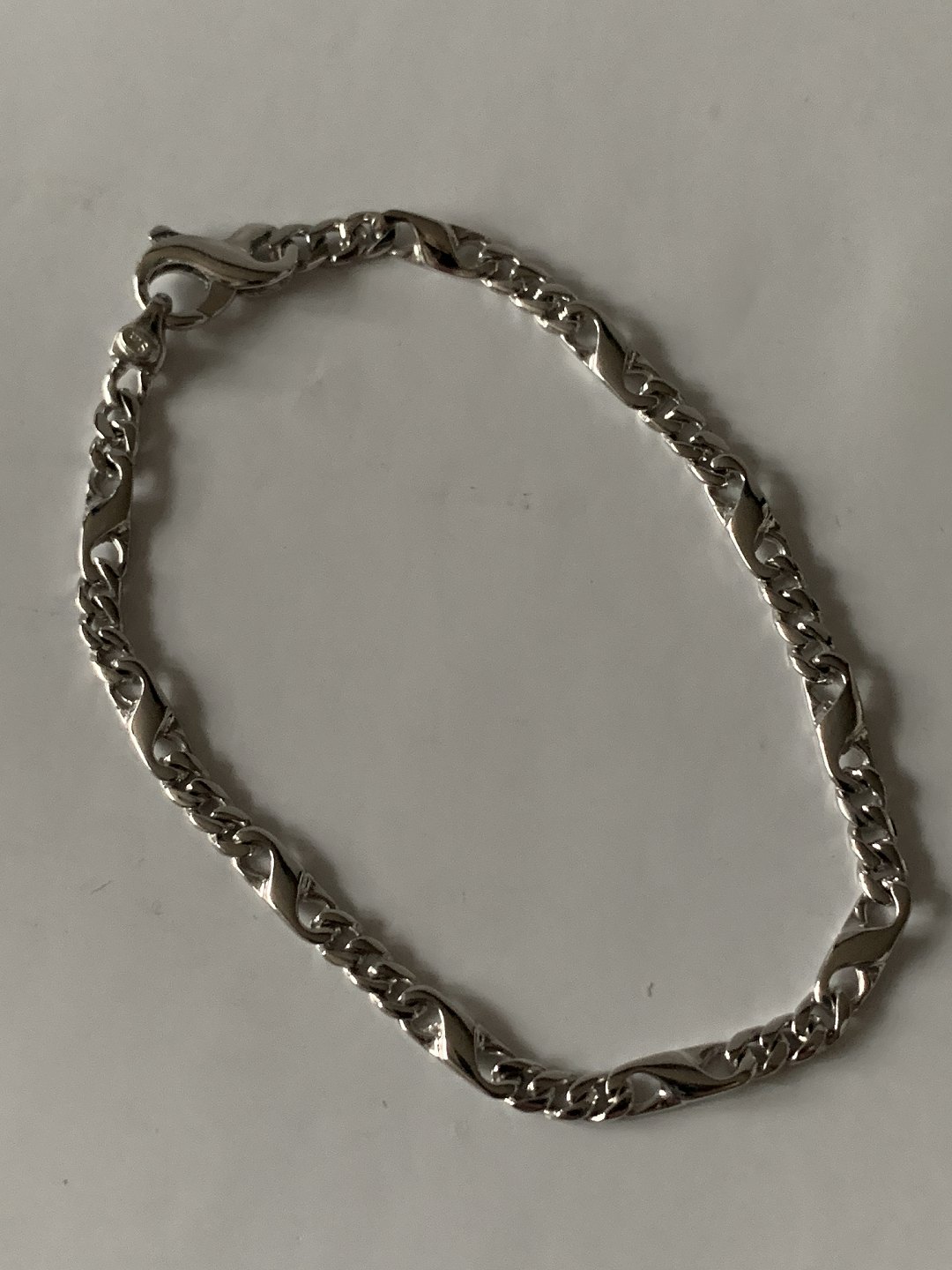 Gold bracelet in 14 carat white gold, stamped 585 HIS and with carabiner clasp.
