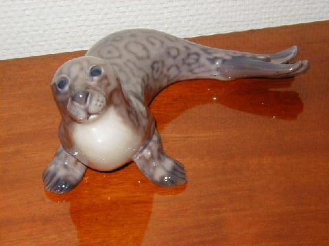 Dahl Jensen Figur af Sæl med dek. nr. 1381, 1. sortering, måler 20 cm. Flot dekoreret.