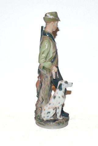Sjælden Dahl Jensen Figur af Jæger med Hund Design. Helge Dørlit Dek. nr. 1373 1. sortering Højde 24 cm. Flot og velholdt stand.
