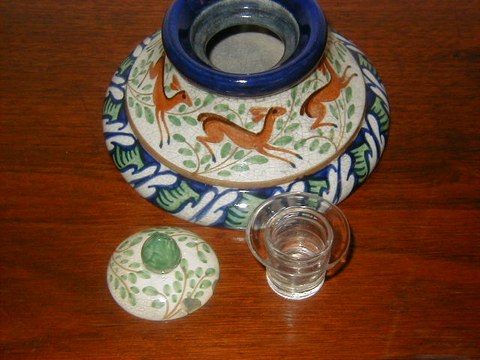 Aluminia Royal Copenhagen Inkpot with bird decorat