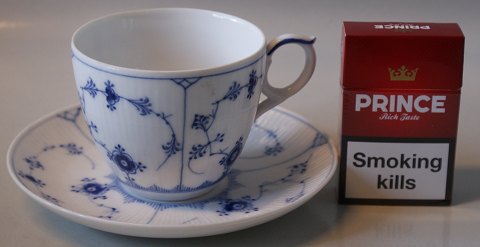 Kongelig Musselmalet Riflet, Meget stor morgen/Kaffekop med underkop Dek. nr. 1/78 Koppen måler 9 cm. i diameter Perfekt stand Prisen er for et sæt med en kop og underkop