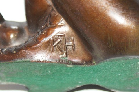 Bronce figur af Dreng med fisk Signeret : KJH, se foto (er lavet af Karl Joseph Hoffmann.) Højde 13,5 cm. Flot og Velholdt stand