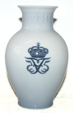 Royal Copenhagen (Rundskue) vase from 1931, Theme: Rider statue of the King Frederik V Factory first Height 17 cm. Excellent condition.