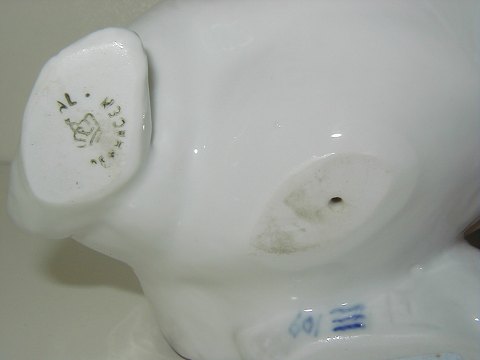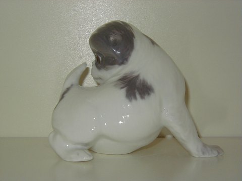 Sjælden Kongelig Hunde Figur, Pekingeser med dekorationsnummer 445. Den er fra før 1923. 1. sortering, måler 14,5 x 12,5 cm. Perfekt stand.