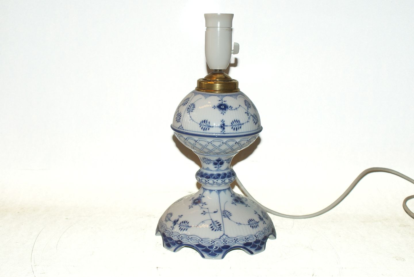 Royal Copenhagen Blue Fluted Plain, Lamp produced 1898-1922 Decoration number 1/379 factory 1st quality Measuring 17.5 cm. Height with socket 32 cm. Beautiful and well maintained.