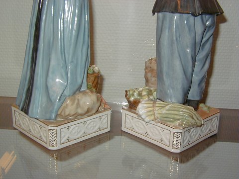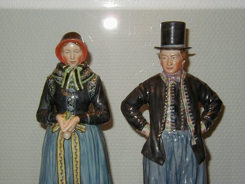 Two Large and very rare Royal Copenhagen Overglazes Figurines, Amager Man and Woman (SOLD in Market Customes. Decoration numbers 12102 and 12103, meausres 31 and 32 cm. Both are factories first.