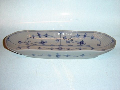 Royal Copenhagen Musselmalet Riflet, kagefad. Af fabriksmærket ses det, at denne er produceret i 1965. Dekorationsnummer 1/144. 1. sortering. Længde 23 cm. Perfekt stand uden fejl.