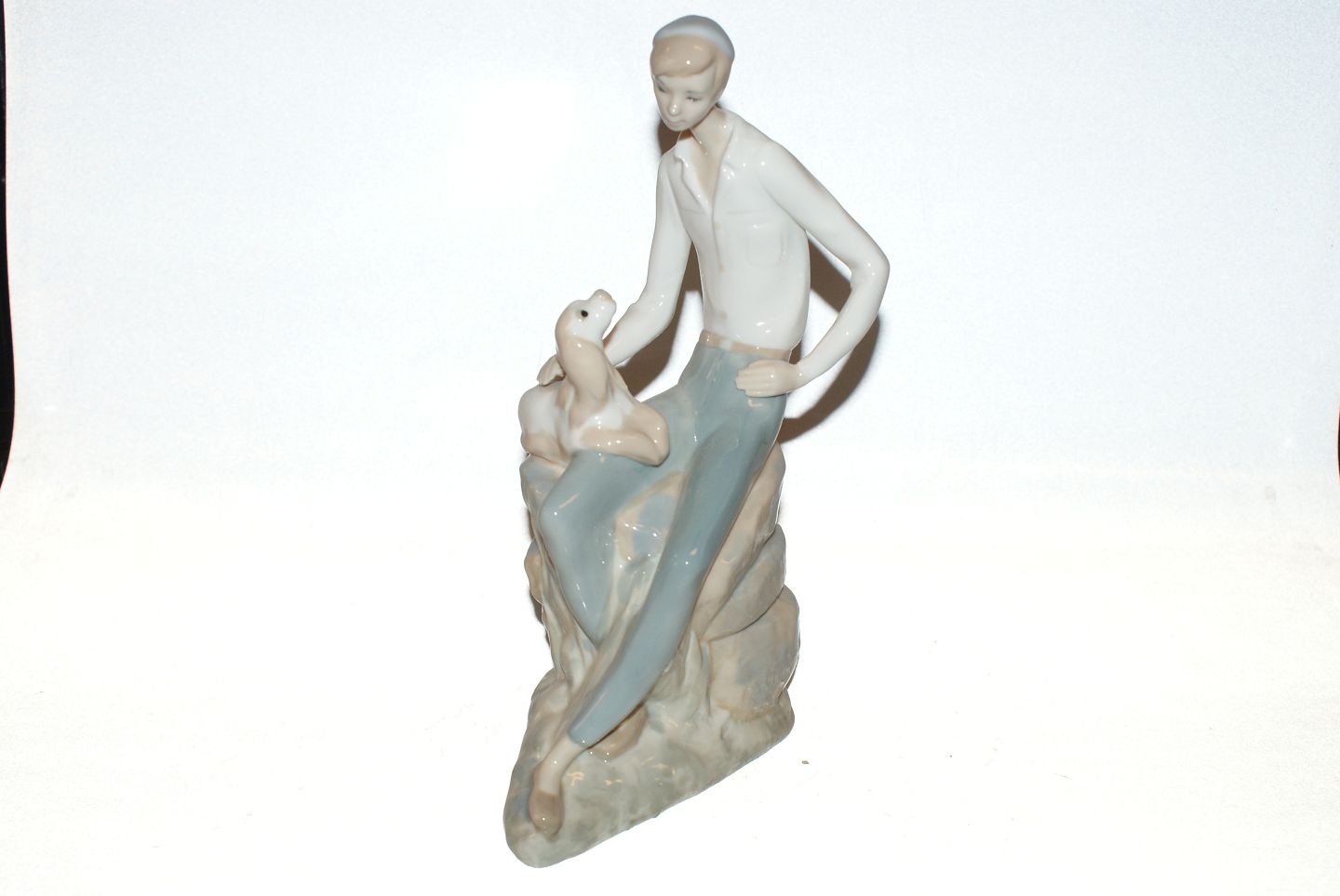 Spanish TANG Figure, Girl with a dog on stone Height 25 cm. Beautiful and well maintained condition, error free.