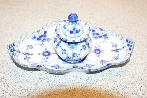 Royal Copenhagen Blue Fluted Full Lace, Writing set with solid inkwells Produced between 1898-1922 Dek. No. 1/1064 1st quality Measures 17 x 10 cm. Beautiful and well maintained.