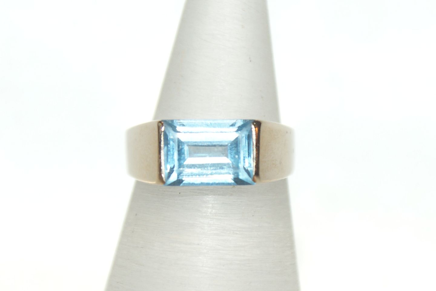 Guldring med Blå sten, 14 Karat Stemplet: 585, KJa Størrelse: 56 / 17,82 mm. Ingen eller næsten ingen brugs slidtage Varen findes ikke fysisk i forretningen Kontakt os for fremvisning