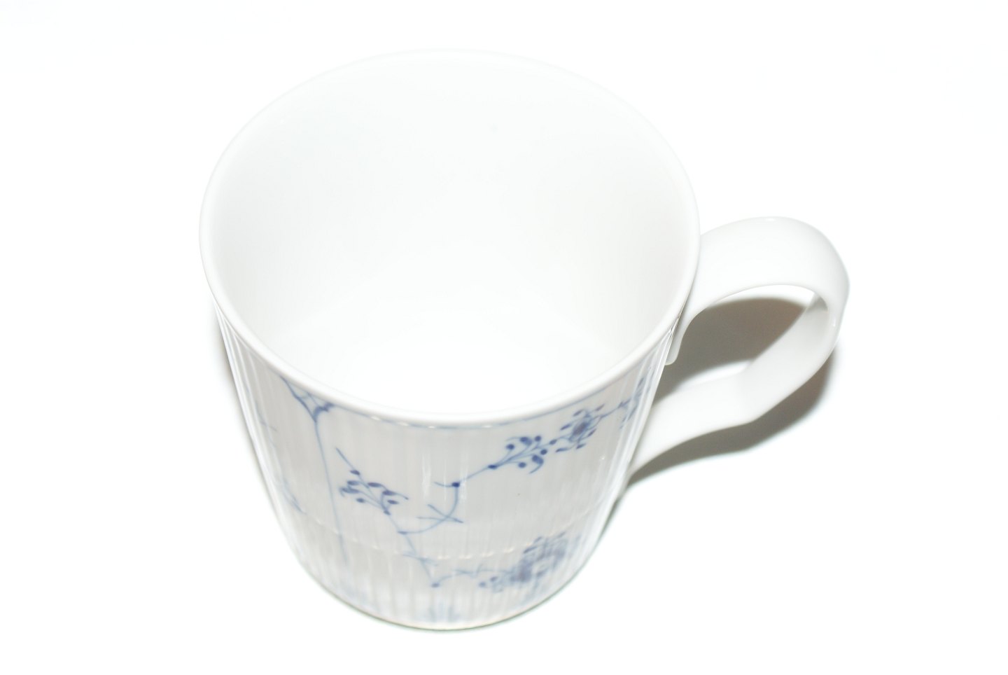 Kongelig Musselmalet Riflet, KRUS Indhold 28 cl. Dek. nr. 101 Diameter 8 cm. Højde 8,5 cm. Perfekt stand Se Musselmalet: http://www.antik-huset.dk/produkter/spise-og-kaffestel/musselmalet-stel-riflet-kongelig.html