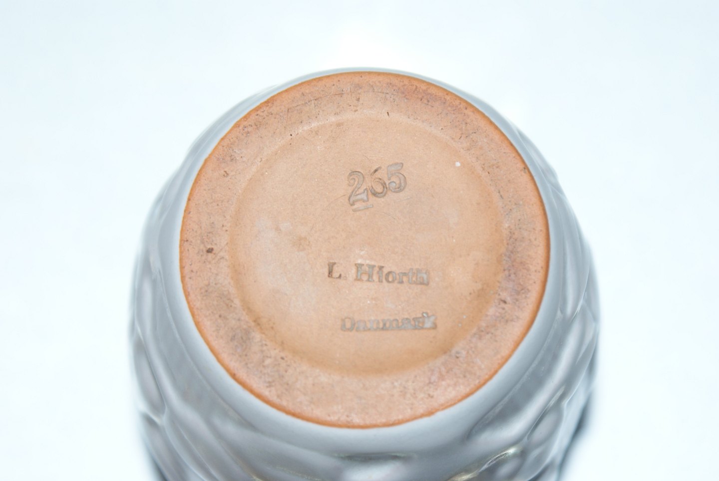 Hjorth pottery vase Model Number 265 Stamp: Hjorth, Denmark, 265 Height 11 cm. Diameter 7.5 cm. Very good condition